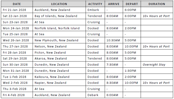 Auckland return 21 January 2028 – 04 February 2028